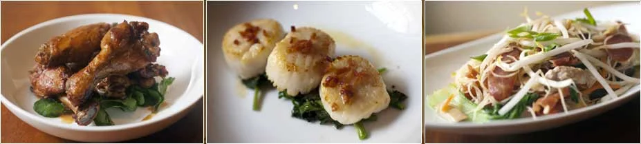 Kuma Inn. Kuma Inn somehow avoids the rampant douchebaggery (sorry, overused word but most appropriate here) of the surrounding restaurants and bars on Ludlow, Orchard, Stanton, and Rivington. Must have something to do with its almost-invisible perch one level up from the street. Walk up a narrow stairway to the second floor and you’ll find a buzzing room—and, alas, a wait on weekends. Filipino-American chef and owner King Phojanakong’s menu has an appealing mix of spicy-meaty Asian-inspired dishes (like sauteed Chinese sausage with Thai chili-lime sauce, or pan-fried pork tonkatsu with watercress salad) and lighter seafood or veg options (drunken spicy shrimp, seaweed salad). And everything’s on the cheaper side. Not massive portions, but enough—and perfect for sharing. Keep in mind that Kuma is BYO; corkage fees range from $1 for beer to $5 for wine, on up to $10 for a liter-and-a-half bottle of sake.